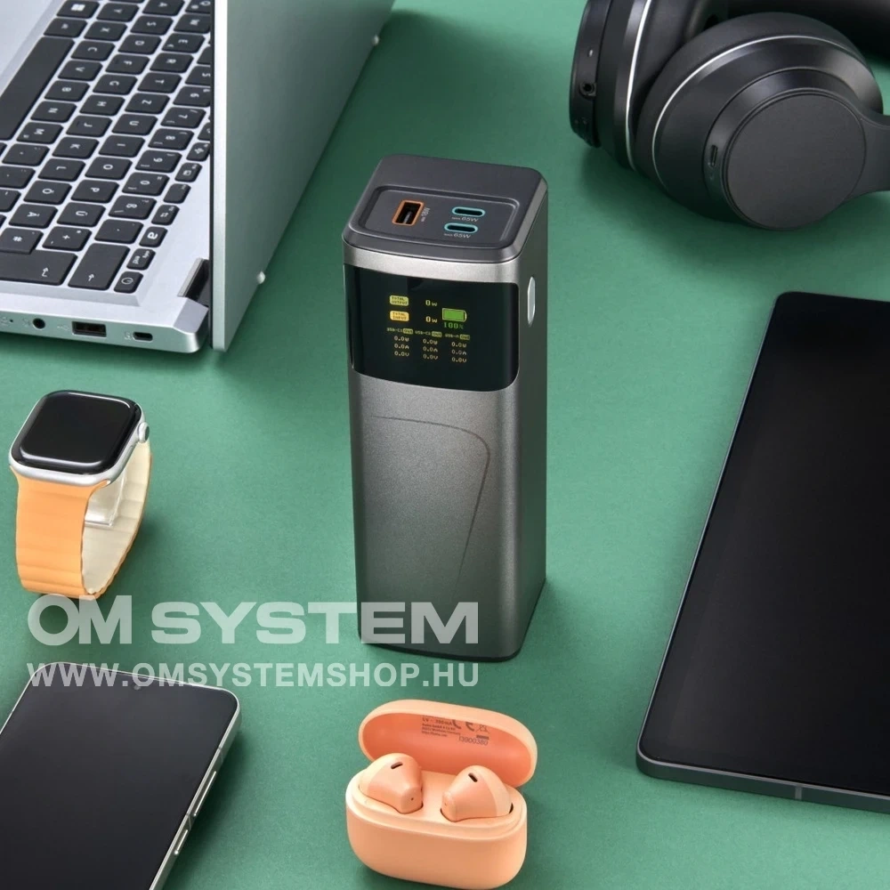 Ha a 200 Wattos csúcsmodellen csak egy USB-C portot használunk, 140 Watt áll rendelkezésre; ha két eszköz csatlakozik, akkor 100 Watt áll rendelkezésre mindegyikhez. Ha mindhárom portot használod, 100 Watt jut az első USB-C portra, 65 Watt a másodikra, és 18 Watt az USB-A portra. A kijelző nemcsak magának a külső akkumulátornak a kapacitását mutatja, hanem az egyes töltőaljzatok kimeneti teljesítményét is, így mindig tökéletes áttekintést kap.