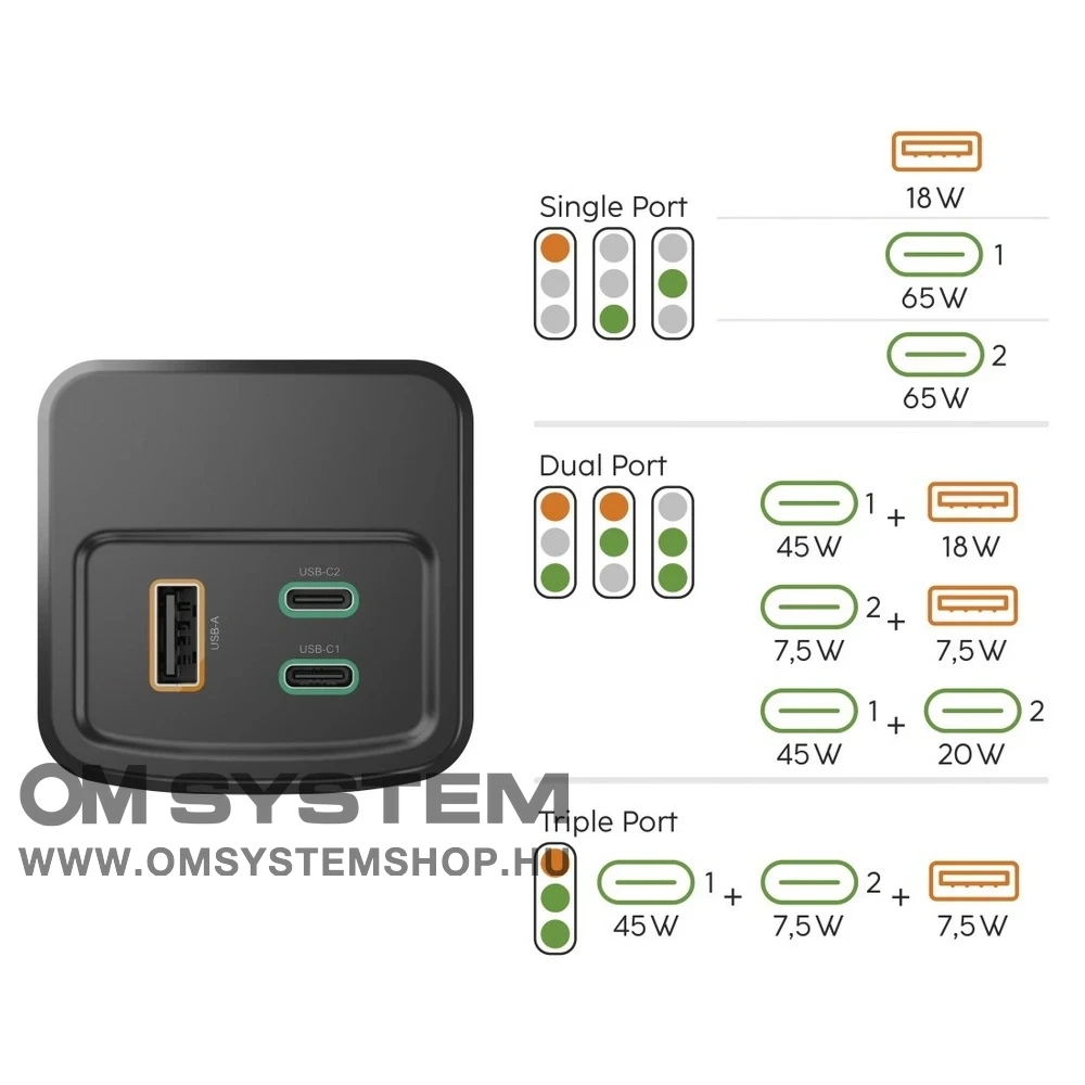 - Maximum kimeneti teljesítmény: 65W